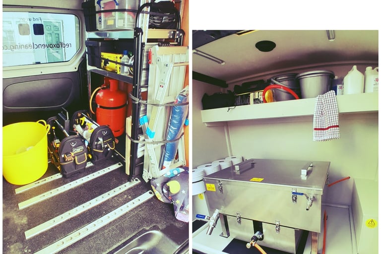 The Red Fox Oven Cleaning van is our mobile workplace, our office and our workshop all in one. This is a 2019 Vauxhall Vivaro Combi, fully fitted out to carry all the tools and equipment needed to complete our cleans.